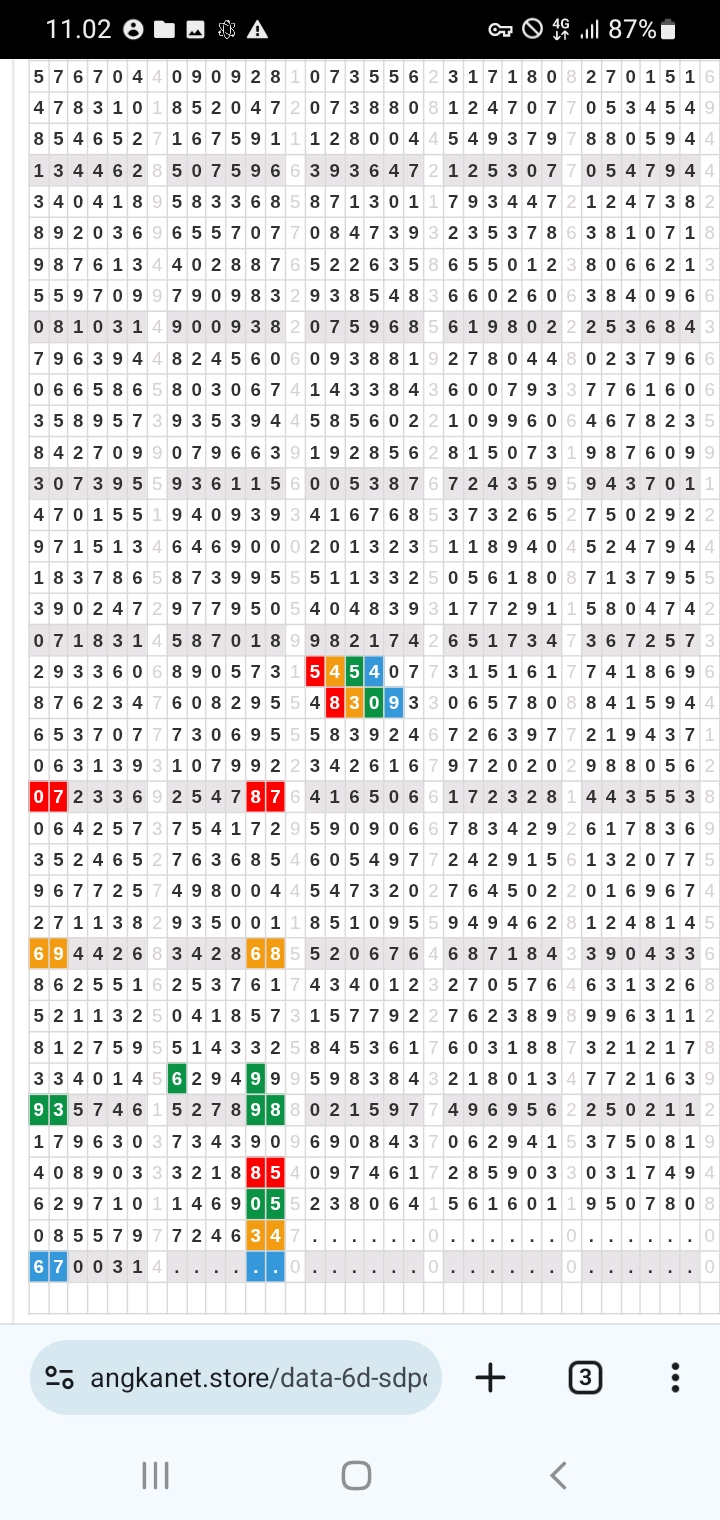 Rumus Angka Mati berdasarkan kepala harian | 04 05 06 07 09 10 15 17 18 20 21 29 30 31 32 41 42 43 53 54 61 62 64 65 72 73 75 82 83 84 85 86 87 93 94 95 96 97 98 |